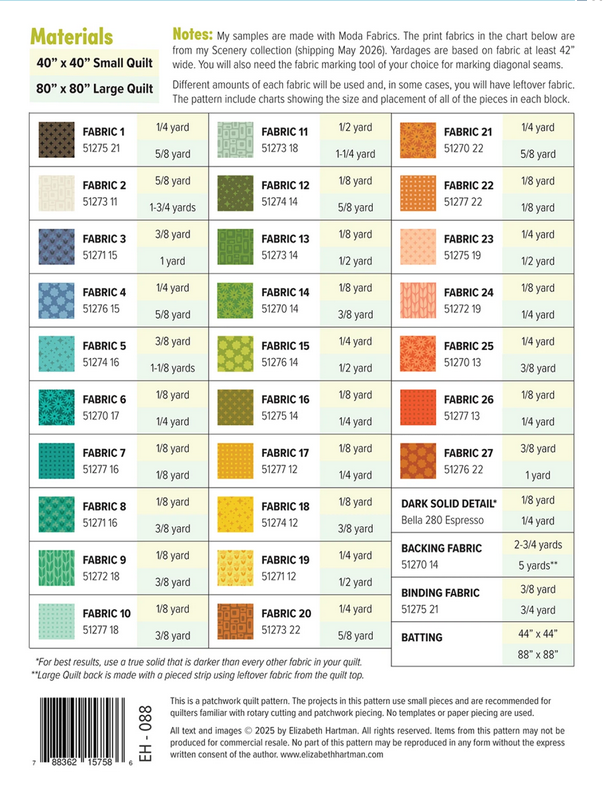 Each quilt includes 14 different blocks made using conventional patchwork techniques. No templates or paper piecing! Make a 40" x 40" Small Quilt with one of each block, or an 80" x 80" Large Quilt with four of each block.