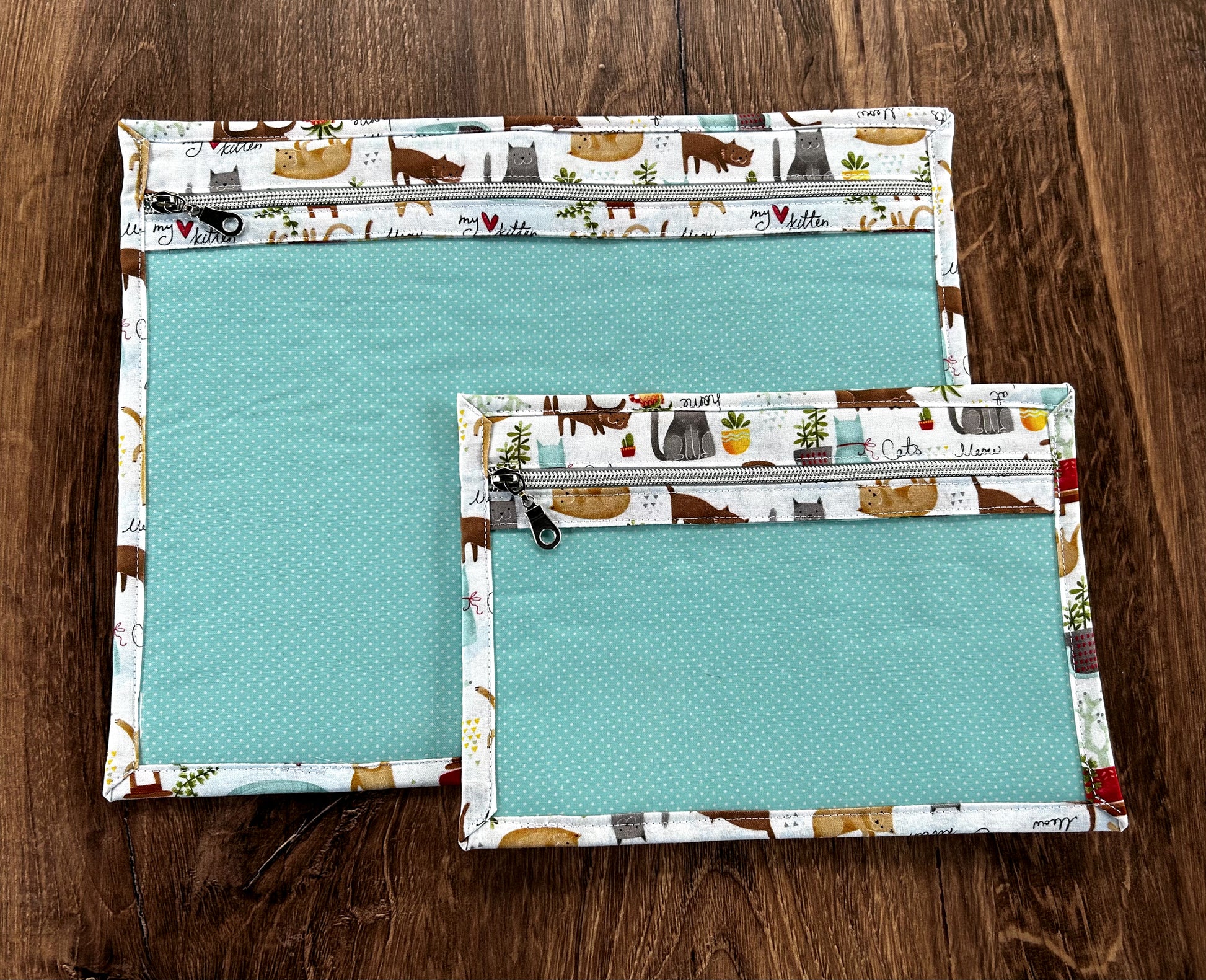Vinyl Cross Stitch Project Bag - Embroidery bag - Project Bag - Knitting & Crochet Bag - Storage - Organizer - Cat Project Bag - Notions