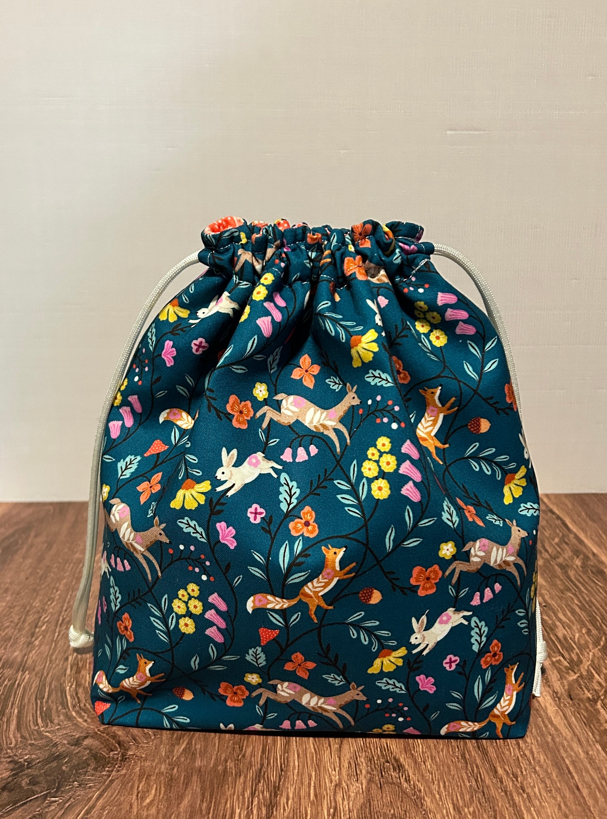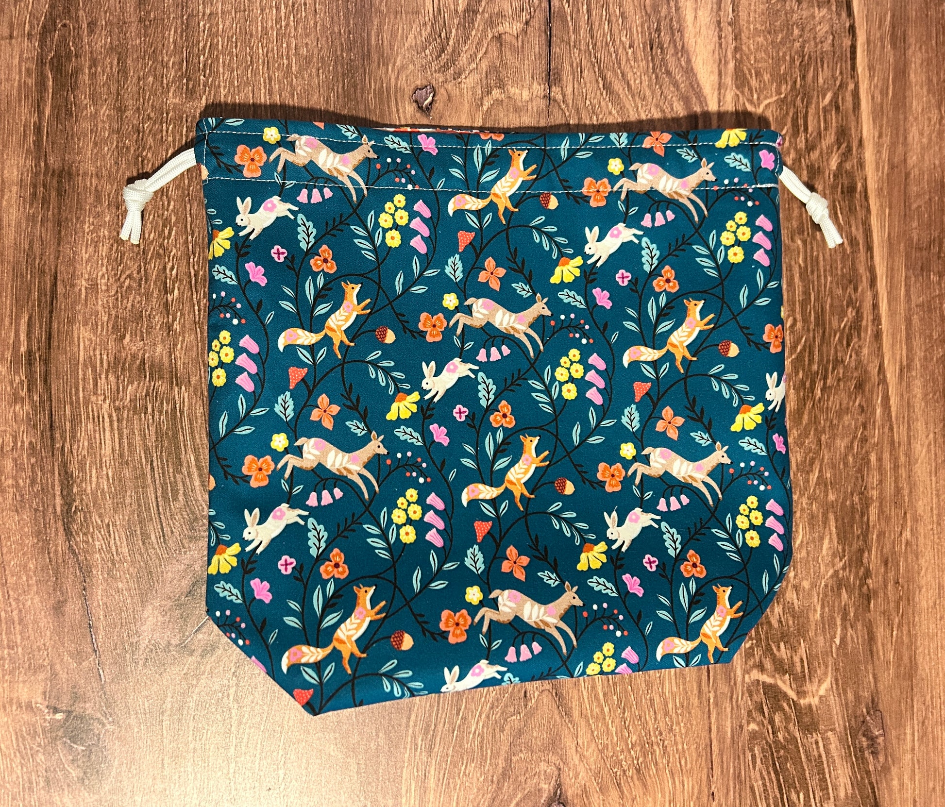 Woodland Project Bag - Handmade - Drawstring Bag – Knitting Bag – Crochet Bag - Toy Sack - Bingo Bag – Cross Stitch Bag - Deer - Fox - Bunny